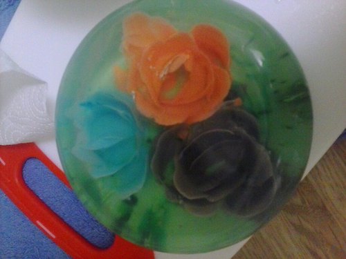 Arachnophobia or fear of spiders affects nearly one third of the population, add to that the fear of needles and this is one scary post. These flowers and spiders are made by injecting a milk based gelatin mixture into a clear jelly.