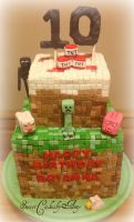 Minecraft is a game where you can explore, create, discover, mine and craft a whole world. In the game it takes patience to build anything. This cake is the same it takes 1,280 tiny fondant squares to make this 3D minecraft logo.