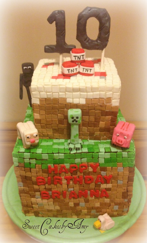 Your Minecraft cake is mind boggling – it looks just like the LEGO Minecraft cube! Thank you so much for this great idea for Minecraft maniacs like my 6 yo son Aidan. I’ve just started working with fondant and this looks easy except for the sheer number of tiny squares required. Last year I made a Creeper mask at my son’s request, using green construction foam sheets and then painted with tiny squares, so I have a feel for the colors and mosaicy mindset required. Thank you for sharing your great ideas and skill!