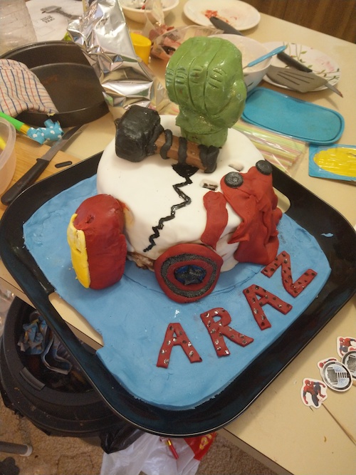 Here’s my attempt of your avengers cake last year. Do you have any tips on battling the summer heat and fondant?