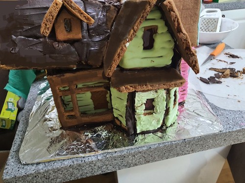 Hello! I finally finished it. It took me a lot of time and it’s the first gingerbread house I made. The template is good, but there are a lot of deviations from the video. One part of the roof was missing x2, so I had to bake it afterwards. Some parts I baked were unnecessary. All in all, I’m satisfied with how it turned out. I also watched your video about chocolate and coloring fondant, which made it much easier for me.
