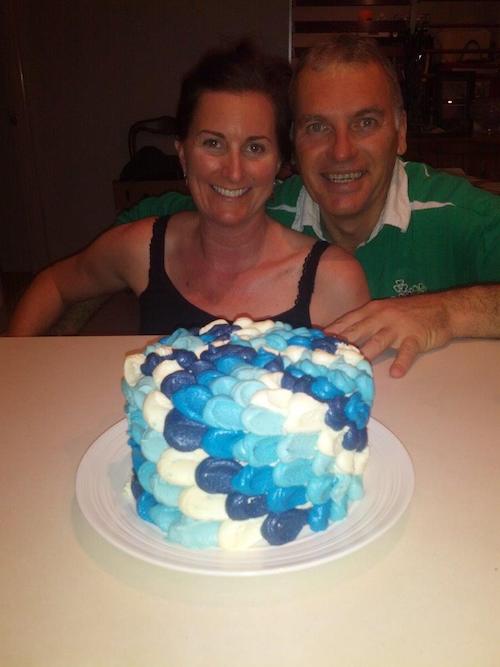 19. Here is a picture of our blue ombre a la rainbow design for my fiance’s birthday. My nine year old daughter was an excellent sous chef keeping me in step with the right colours handed to me at the right time! It went a lot faster than we expected! many thanks and I hope you like it!:)