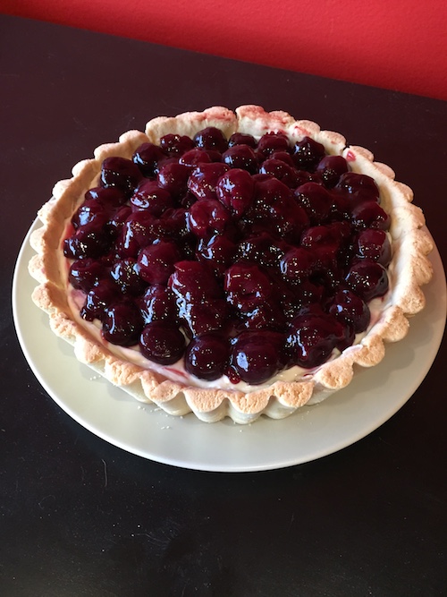 I love fresh cherries!  On my university summer holidays, I worked at a large department store and every lunch break I’d walk across to the supermarket for cherries.  When I was dreaming up this desert, I couldn’t bear the thought of cooking these beautiful American cherries so I’ve prepared a fresh cherry pie instead.