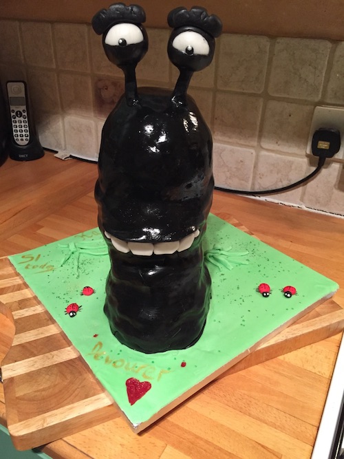 If you know the game ‘Best Fiends’ you will instantly recognize this cake as one of the slugs that you’ve been spending your time trying to defeat. His name is ‘devourer’ and this is one slug that you can overcome by serving him up to happy party guests.
