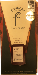 From the label: In Soconusco, Southern Mexico there’s a dedicated group of farmers rediscovering and rescuing near-forgotten heirloom varieties of cacao. Their exception al efforts result in a beautifully balanced chocolate that is simultaneously mysterious and comforting. While Soconusco Region, Chiapas, Mexico delivers a contrast of fruity tang and warm silky nuttiness, it’s simply the cacaos origin talking.