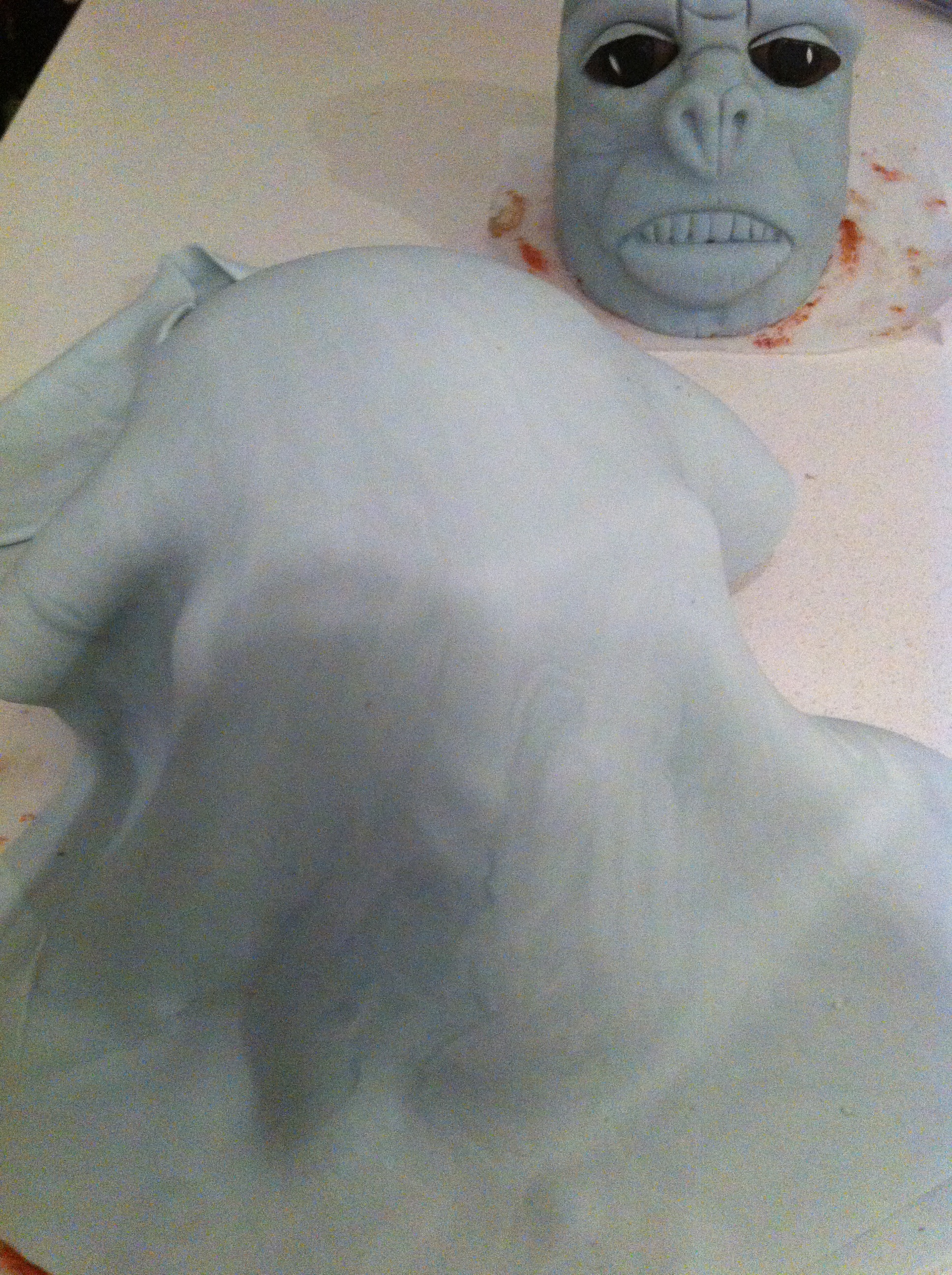 cover skull top in ganache put in place and cover whole thing in grey fondant