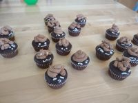 Alternatively if you have already made your buttercream you can heat some spoonfuls of it in the microwave and add extra icing sugar to make the desired consistency. Covering the cupcake in the warmed buttercream gives a smooth glossy finish.