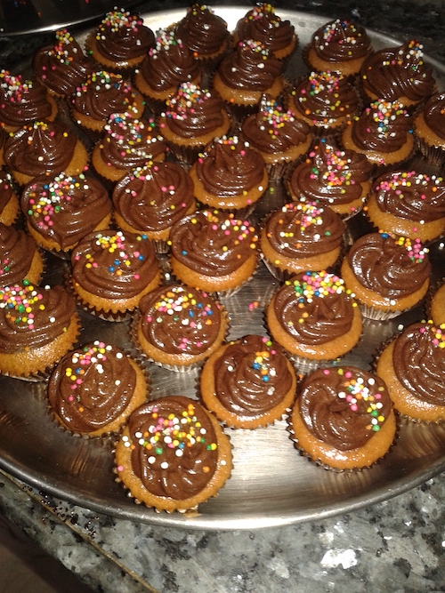 Pipe onto cupcakes and top with candied fresh banana – for help making candy see sugar decorations post