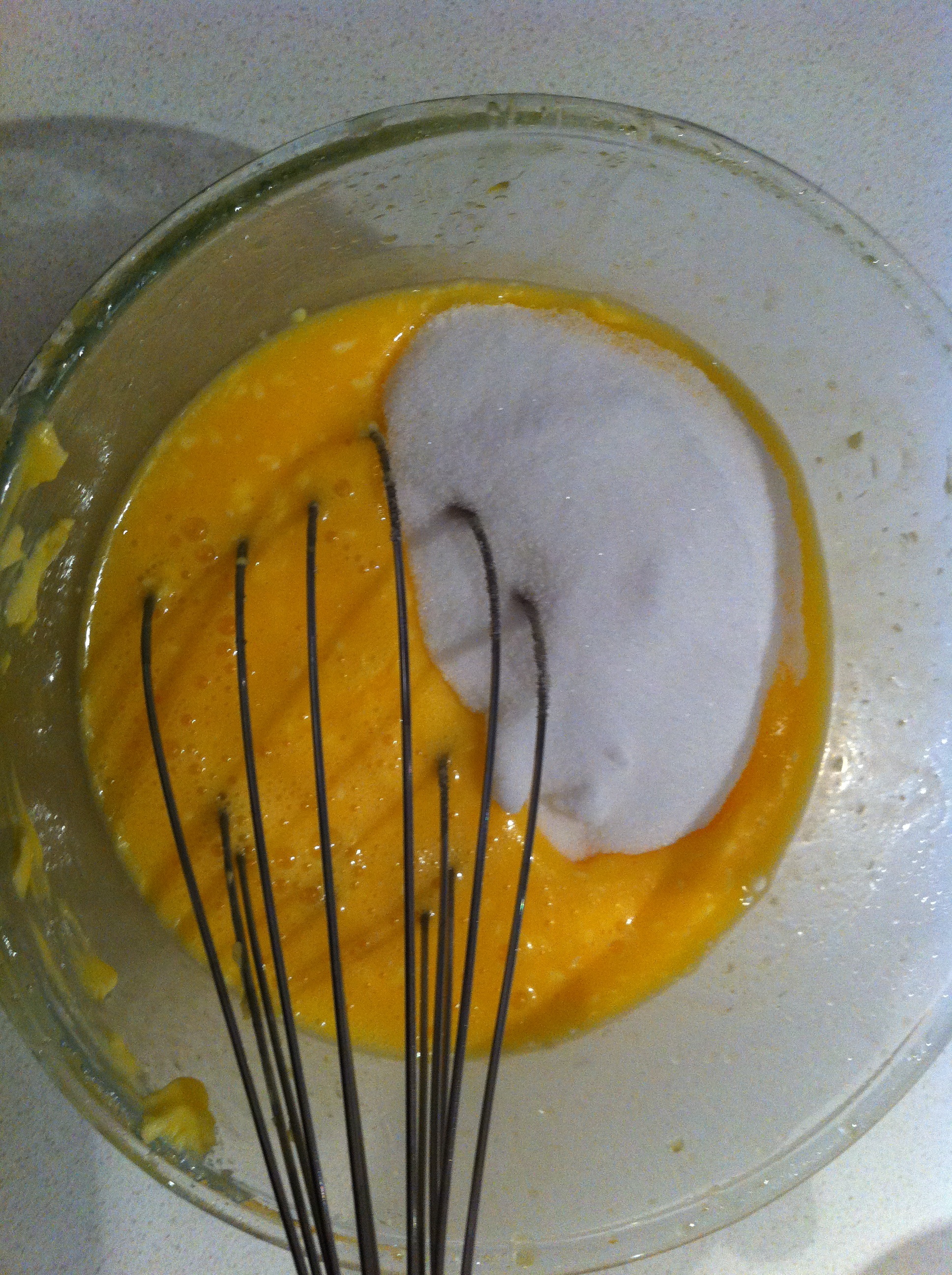 Beat in eggs, sugar, vanilla essence and marsala.