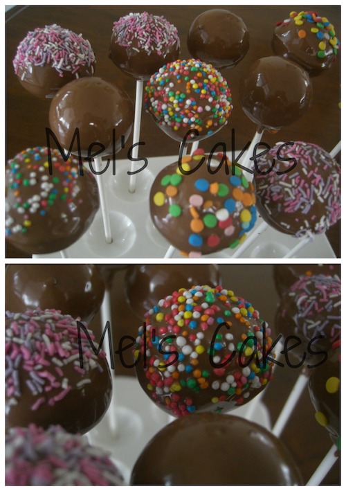 Cake Pops seem to be everywhere in the US, even starbucks has them, yet I have heard very little of them here in the land down under.  Their decoration can range from pretty, like my ones above, to extraordinarily intricate designs.  So I thought I’d give them a go.