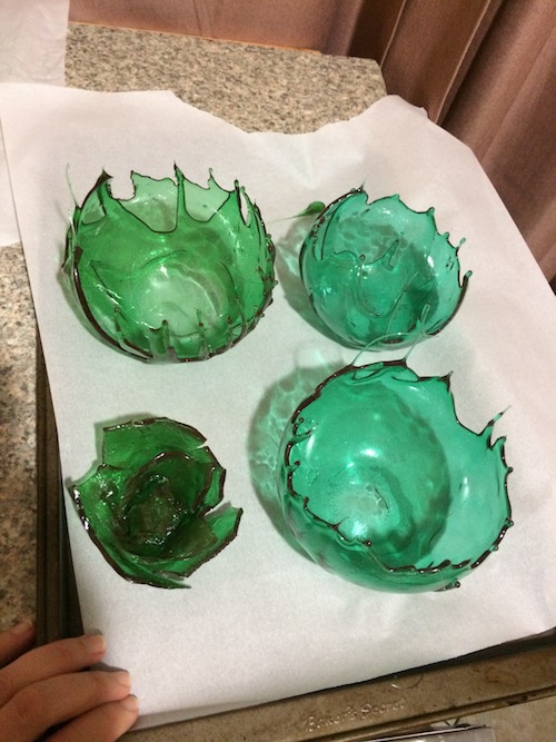 15. Hello, ours ended up a nice shape but very sticky. I’m sure I must have done something wrong – maybe waiting too long after removing from heat or not waiting long enough before emptying the water from the balloon. Any thoughts? Thank you.