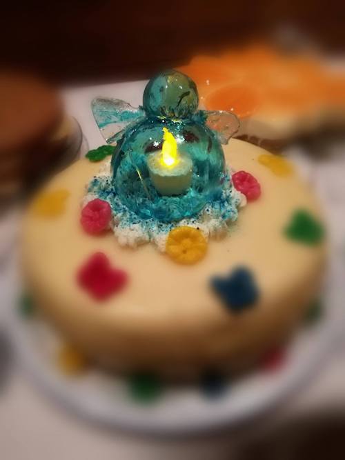 I´m from Norway and I was asked to make some decoration to put on a birthday cake to a friend of the family. She loves angels, so i experimented a little myself. I filled a ballon with water until I got the size I wanted and managed to tie some yarn tight around the top of the ballon, so that I got the shape of a head. Before I mixed in the colour in the syrup, I poured some of it on a separate sheet of baking paper. When it had cooled down I broke it into pieces, took the pieces that had a triangle shape, warmed one side and held it in place on the “body” (after I had removed the ballon). I placed a fake candle inside it on the cake and I think it turned out really pretty!
