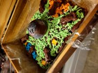 This is a beautiful moist and delicious chocolate cake with the crunch of toasted pistachios and almonds on the side topped off with rich ganache and chocolate flowers. Perfect for Christmas or any other special gathering.