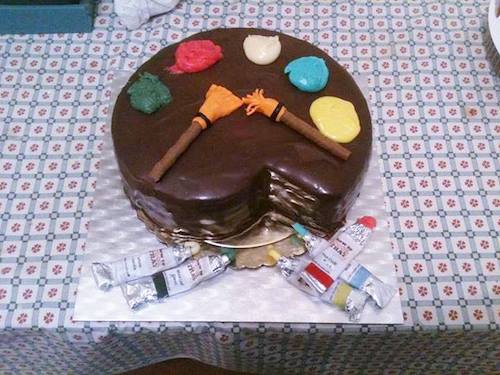 10. i made a pallette shaped cake with eight different flavoured colours and a picture on an easle next to it all by myself.