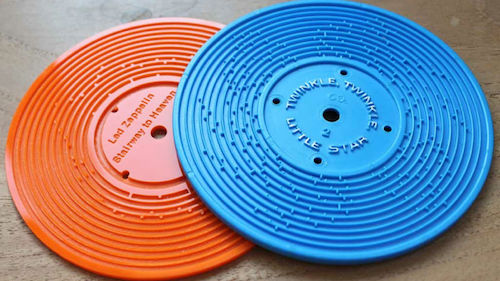 When I was a kid in the 80’s they had these Fisher Price toy records that were made of a thick plastic and had deep grooves so that a kid could play with it without breaking it but it really worked as a record playing short kid songs. Maybe one of those would work. I did a google image search, this is what they were like: