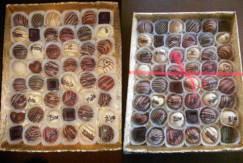 If you make all of the fillings below you will make 71 truffles and will need 835g (29.45 ounces) of tempered chocolate for covering them.