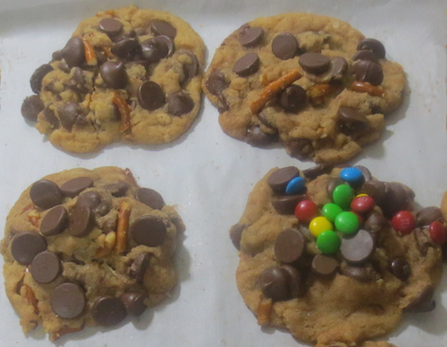 3. I used a half cup of butter and 3T of corn syrup. I did Nestle’s dark chocolate chips since they come in a large size. These cookies are yummy! Here’s my picture: