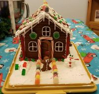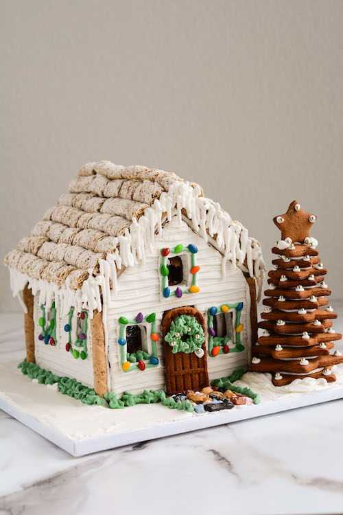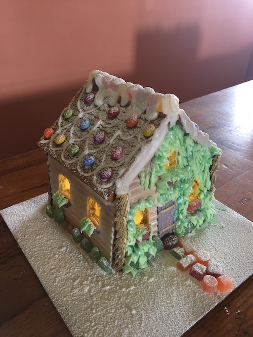 • Hi Lila, You can decorate your gingerbread house however you like. Ann made the walls from gingervread and coated them in white chcolate.