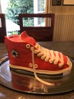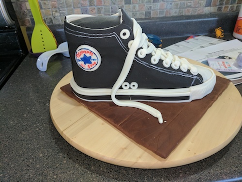 Since making the high heel cake tutorial requests have been coming in thick and fast for a converse shoe cake. You can make this chuck Taylor All Star sneaker in any colour that your recipient wishes. Or if you’re brave why not try making a patterned one.