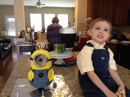 IMG_2646Despicable Me 2 is coming soon and my middle boy loves the cute minions, so this year he wanted a minion birthday cake. There have also been some requests from subscribers for a 3D upright cake tutorial and despicable me cake, so I filmed the making of his cake for you.