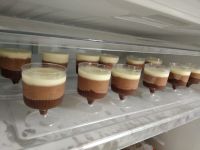 • Hi Veronica, It’s been a while since I made these and looks like I didn’t keep a record of that. Just looking at the ingredients if you make milk dark and white you’ve got about 650ml unwhipped. If it increases in volume by 1.5x you’d have about 975mL. Shot glasses very in size from 20-100mL so you’ll need to measure your shot glass to see how many it will make. ?