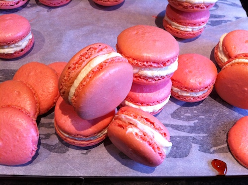 It is easiest to flavour you fillings – if you want flavoured ganache boil the cream with what you want to infuse it with eg: cinnamon quills /vanilla pods / stem ginger. Then leave to sit for 10 minutes. Strain and then bring back to the boil and pour over your chocolate as per ganache recipe. One I love is chocolate macarons with ginger ganache.
