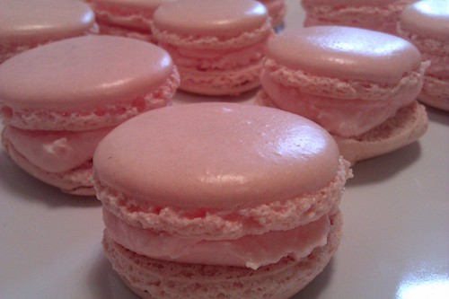 this is my second try though, here’s a photo of strawberry maracoons, i put white chocolate ganache with strawberry puree in the middle… 🙂