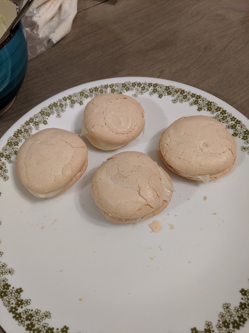 First attempt! I didn’t get any feet on mine and a few cracked and were almost hollow inside, but this felt like such a huge success! They tasted great!