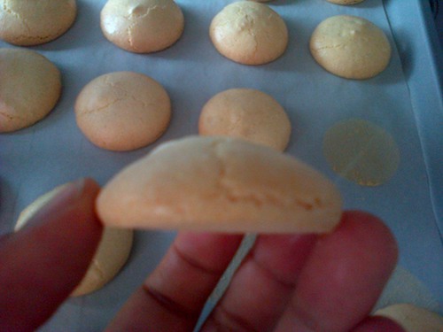 Mmmm the other point was that my macarons haven’t the feet!!!! They are cracked!!! And the first batch looks better than second!! 🙁