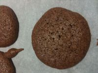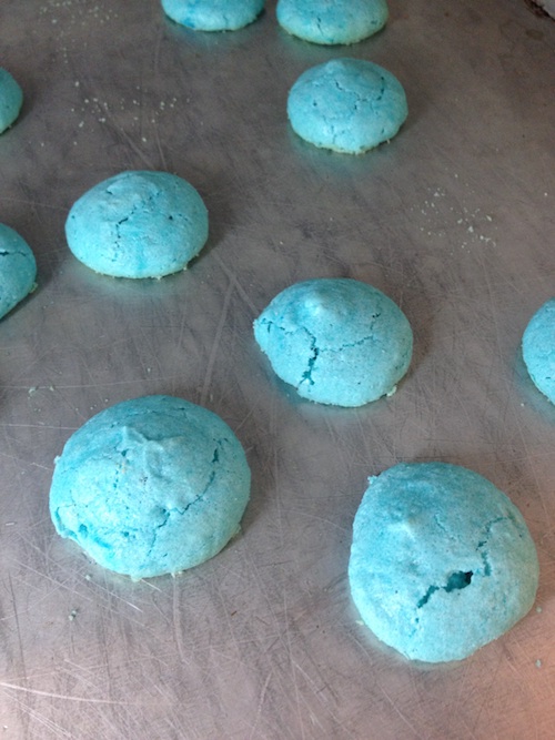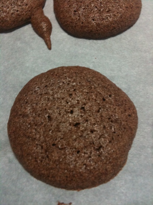 Batch 2 – They were really cute……feet make a difference! But again they lost their brilliant purple color and browned. Less brittle/crispy on the outside and still sticky on the inside. These too were glossy on the bottom. None of them cracked. This time around I reduced the oven by 10 degrees. I took them out of the oven when they were still brilliant purple but they were not cooked as I couldn’t get them off the tray. They would stick on the bottom and fall apart from the top. I put them back in the oven for a few more minutes but then they browned top and bottom . I also used the weight measurements instead. They did turn out better than batch 1 but nothing like the store bought ones that I buy. The ones I buy a very yummy, a tad crisp on the outside and cake like on the inside and oh, yes very expensive.