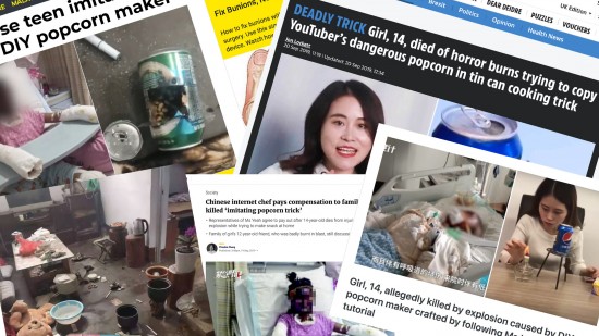 Also discussed in this video is the tragic story of a two young teenagers in China who tried to replicate a hack they had seen in a video for making popcorn. One girl died from her injuries after two weeks in hospital and the other is still recovering from burns.