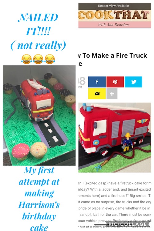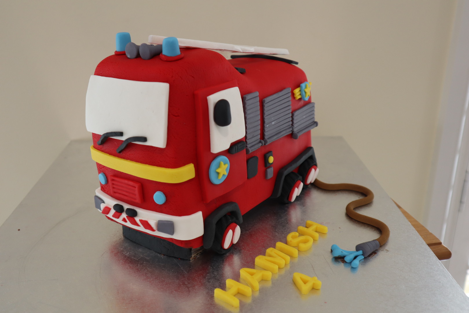 “Can I (excited gasp) have a firetruck cake for my birfday? With a ladder and, and (insert excited movements here) and a fire hose?” Big smiles. This request came as no surprise, fire trucks and fire engines take pride of place in every game whether it be in the house, sandpit, bath or the car. There must be some sort of rescue vehicle present. Preferably a firetruck with a ladder but at a pinch a yellow taxi can pass as a rescue car when back up is needed.
