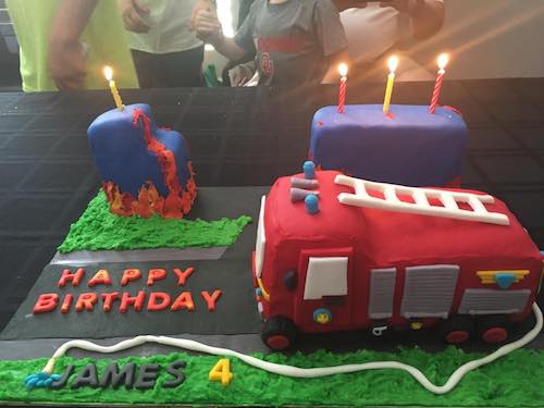 “Can I (excited gasp) have a firetruck cake for my birfday? With a ladder and, and (insert excited movements here) and a fire hose?” Big smiles. This request came as no surprise, fire trucks and fire engines take pride of place in every game whether it be in the house, sandpit, bath or the car. There must be some sort of rescue vehicle present. Preferably a firetruck with a ladder but at a pinch a yellow taxi can pass as a rescue car when back up is needed.