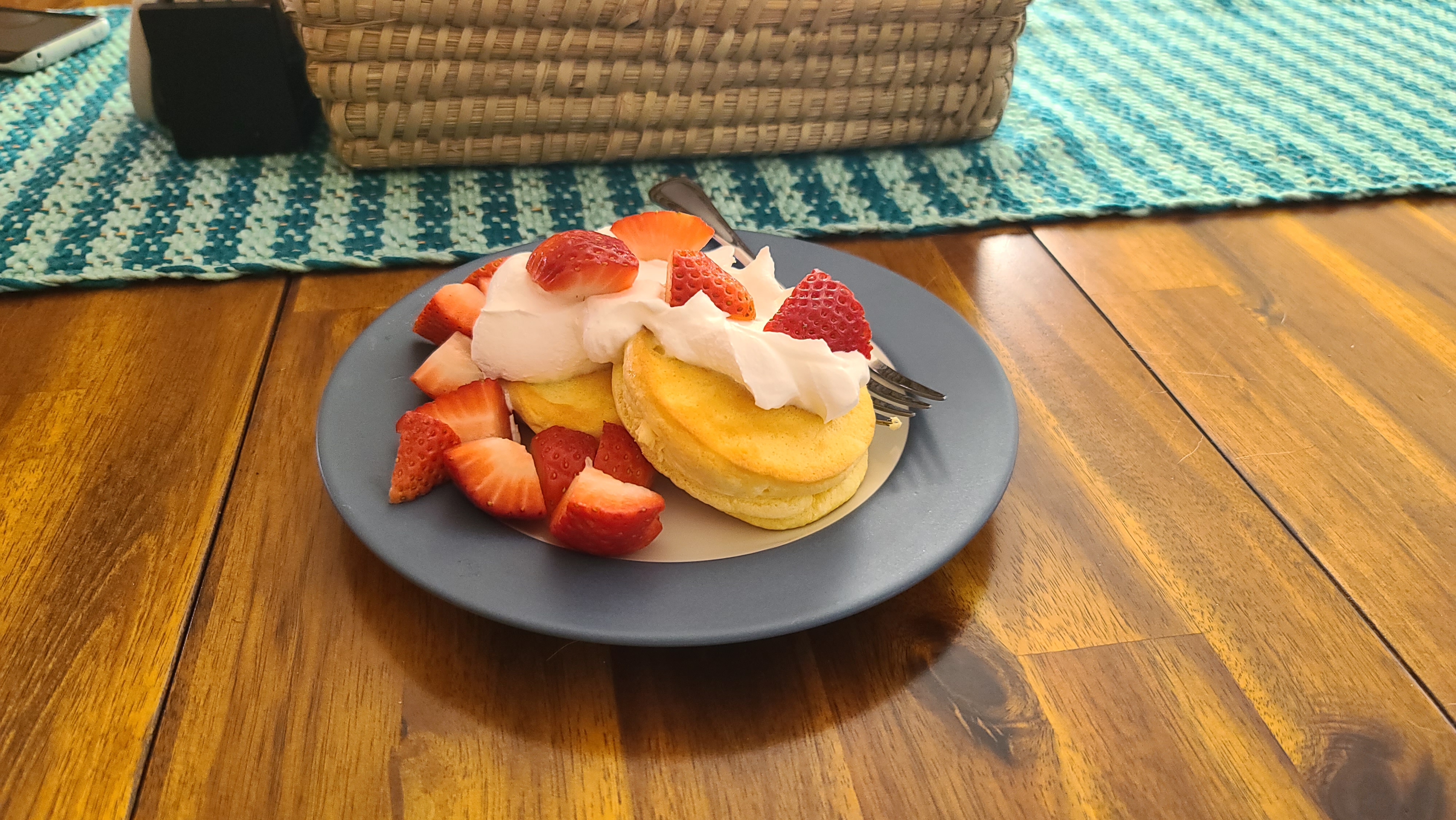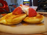 Amazing with whipped cream. The fluffiest pancakes I have ever seen.