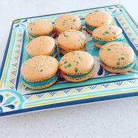 This was my first attempt at macarons and I love them! I made these ones blue and orange for the Florida Gators with some blue “splatter paint” (food coloring) on top!