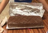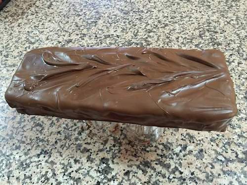 Make sure the bar is completely cooled then coat in chocolate as shown in the video.