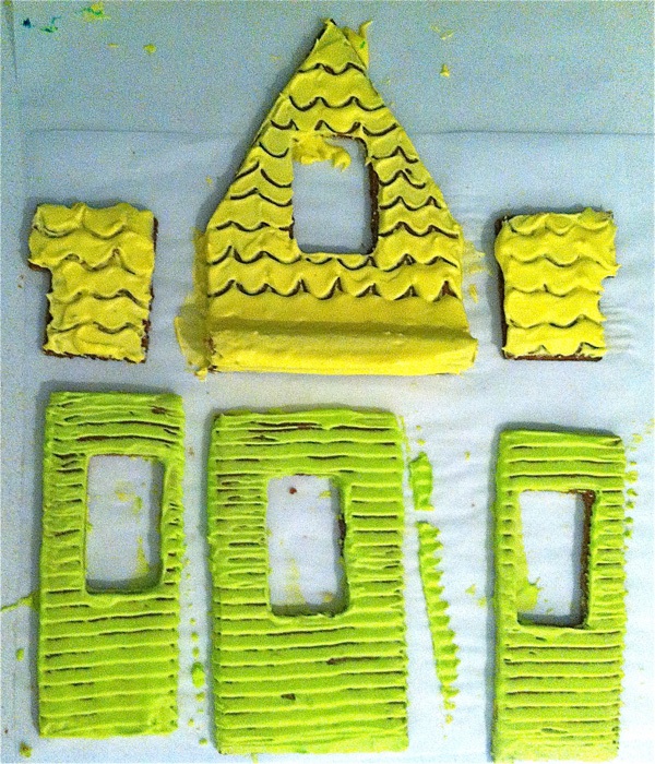 Cover the front feature section in green and yellow icing (plus platform piece not pictured)