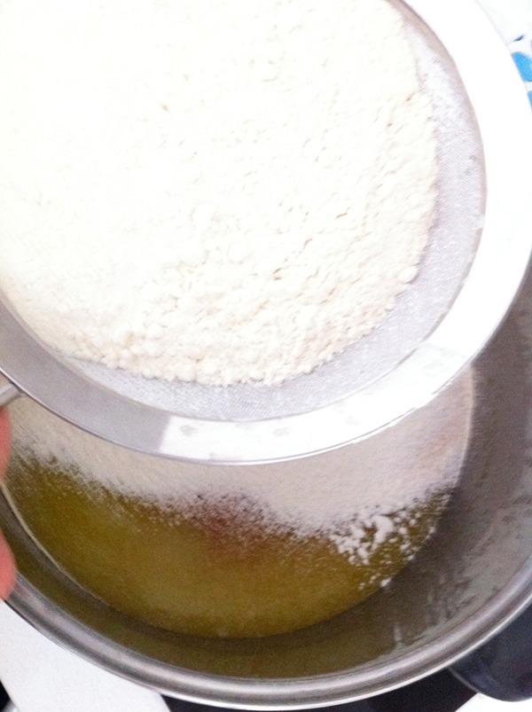 Add sifted flour and spices
