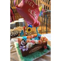 Gravity defying cakes are so much fun, they certainly grab peoples attention at parties. The trick to this hovering watering can cake is some serious hidden supports. Once you’ve got that set up it is really not so hard to make the cake defy gravity.