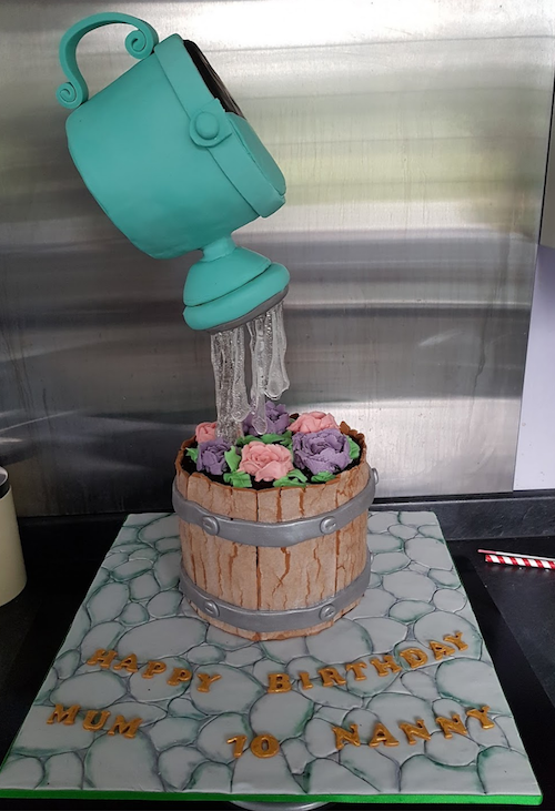 The top handle on my watering can didn’t survive but I didn’t think it took much away from the cake.