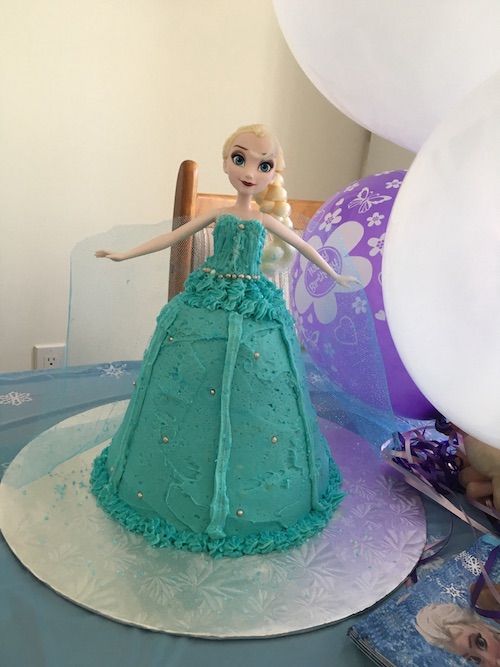 19. I used your instructions to make an Elsa cake from Frozen. Not only did it turn out beautifully, but everyone commented on how delicious the cake was as well! The only challenge I ran into was that the Elsa doll’s knees didn’t bend, so I baked the excess batter in another small Pyrex bowl for the top of the cake to add the necessary height. Great tutorial – I am by no means a baking pro and yet the results were great!