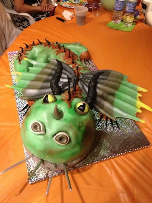 Step 7: Walk through the shops with everyone staring at the cake, sing happy birthday and enjoy dividing up dragon parts to the kids.