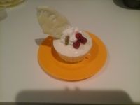 A light refreshing dessert consisting of a yoghurt mousse filled with raspberry sauce. You can adjust this recipe to make it even lower in sugar if you like.