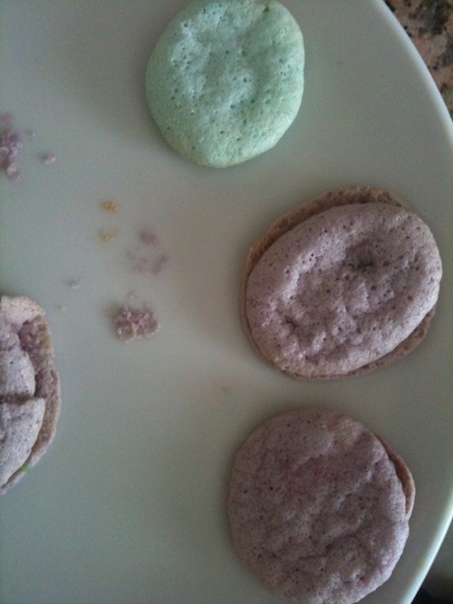 14. My macaroons turned out nicely. They have lost colour though! They’re supposed to be purple, but turned out grey-ish. Is it the food colouring I’m using or the temperature?