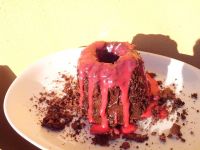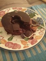 Step 4: Take a spoonful and chocolate ganache oozes out of the centre like molten lava onto the cold plate.