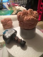 Add a ball of black fondant to the end of the hammer, shape and brush with silver.
