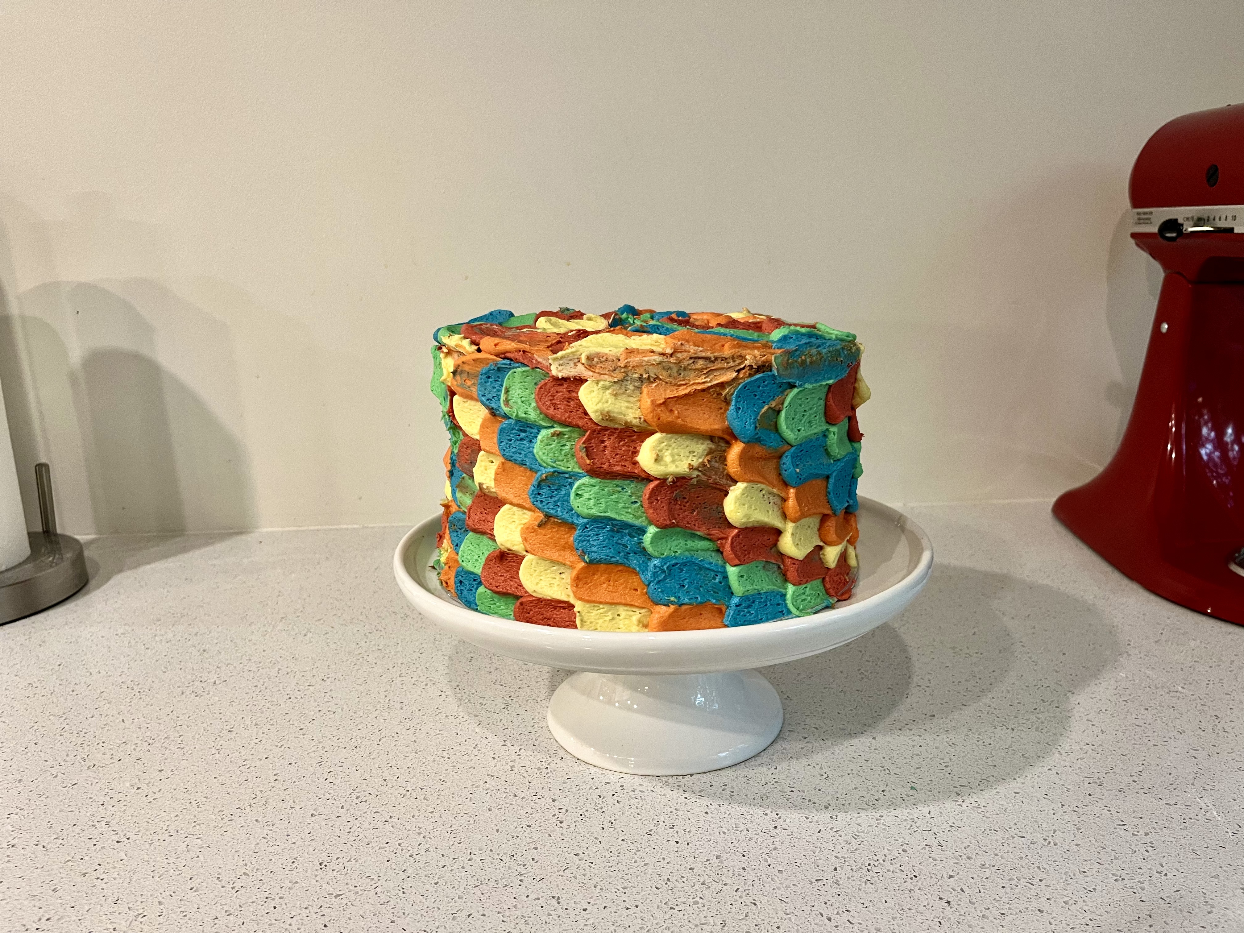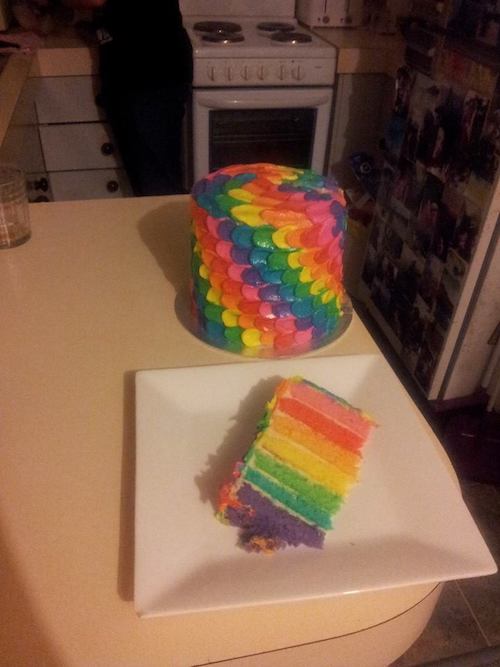 I just wanted to send you a photo of my 16 year old son’s version of your Rainbow Cake. I was amazed by his effort and impressed at how delicious the cake tasted.