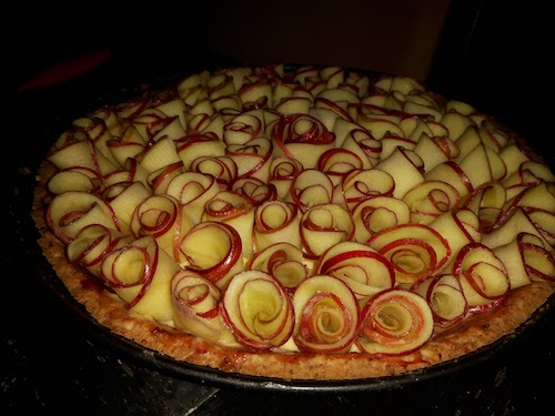 Hi, I fell in love with initially the look of this (of course) and didn’t waste anytime getting started to make it. I have a family bbq and wanted to take this masterpiece along with me. I’ve just finished putting it all together, but the coating (more specifically the butter), seems to have set on the apples. Is there anything I can do to get rid of the butter that’s set on the apples, without damaging the roses or the pie?