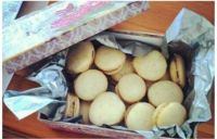 Spoon into a piping bag and pipe small circles of mixture onto NON-STICK baking paper. Slide onto a baking tray and bang on the bench firmly several times on each side, sprinkle with raw sugar.