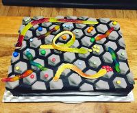 Hi Ann, I tried to start with this kind of cake. But instead of Slither.io I would make Dancing Line The Piano. It would turn out pretty well, but we does not have enough flour. So instead of using the second layer as the pianotiles then I wil just paint it with glaze.